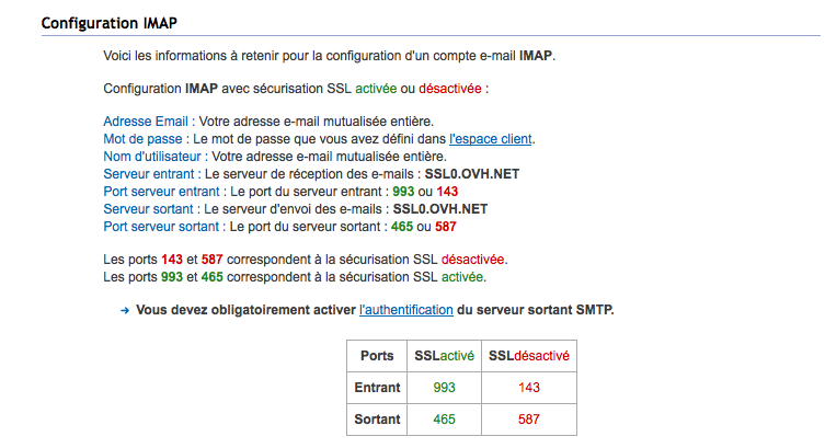 Les paramètres de vos boîtes mails :